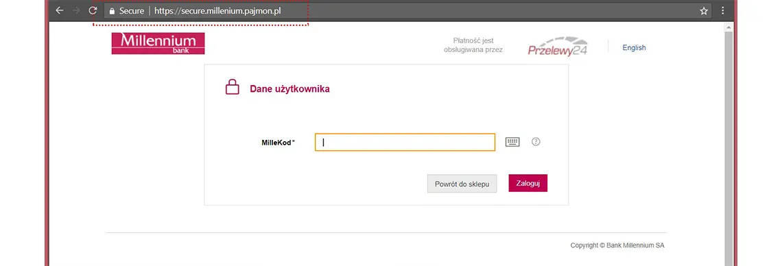 2. Zawsze sprawdzaj pasek adresu na stronie operatora płatności