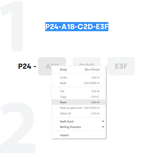 The system will automatically remove the first three characters "P24" and correctly paste the rest of the transaction number into the remaining fields.